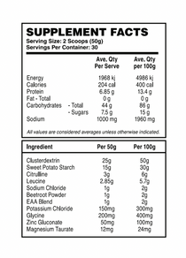 ➡ Performance Optimization: Citrulline Malate and Beetroot Powder support nitric oxide production and oxygen efficiency, boosting vascularity and endurance. Electrolytes like Sodium Chloride maintain muscle function and hydration throughout high-output sessions.